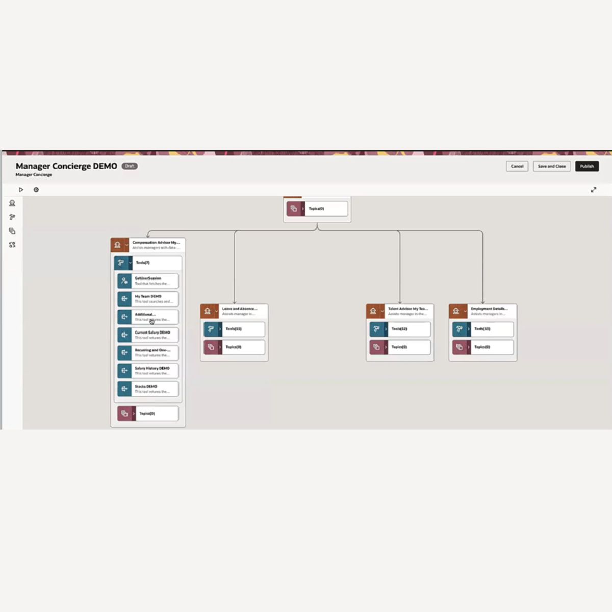 Example โ Compensation Worker Agent: Uses Oracle business objects such as: current salary, additional compensation, one-time payments, stock/equity, and salary history.