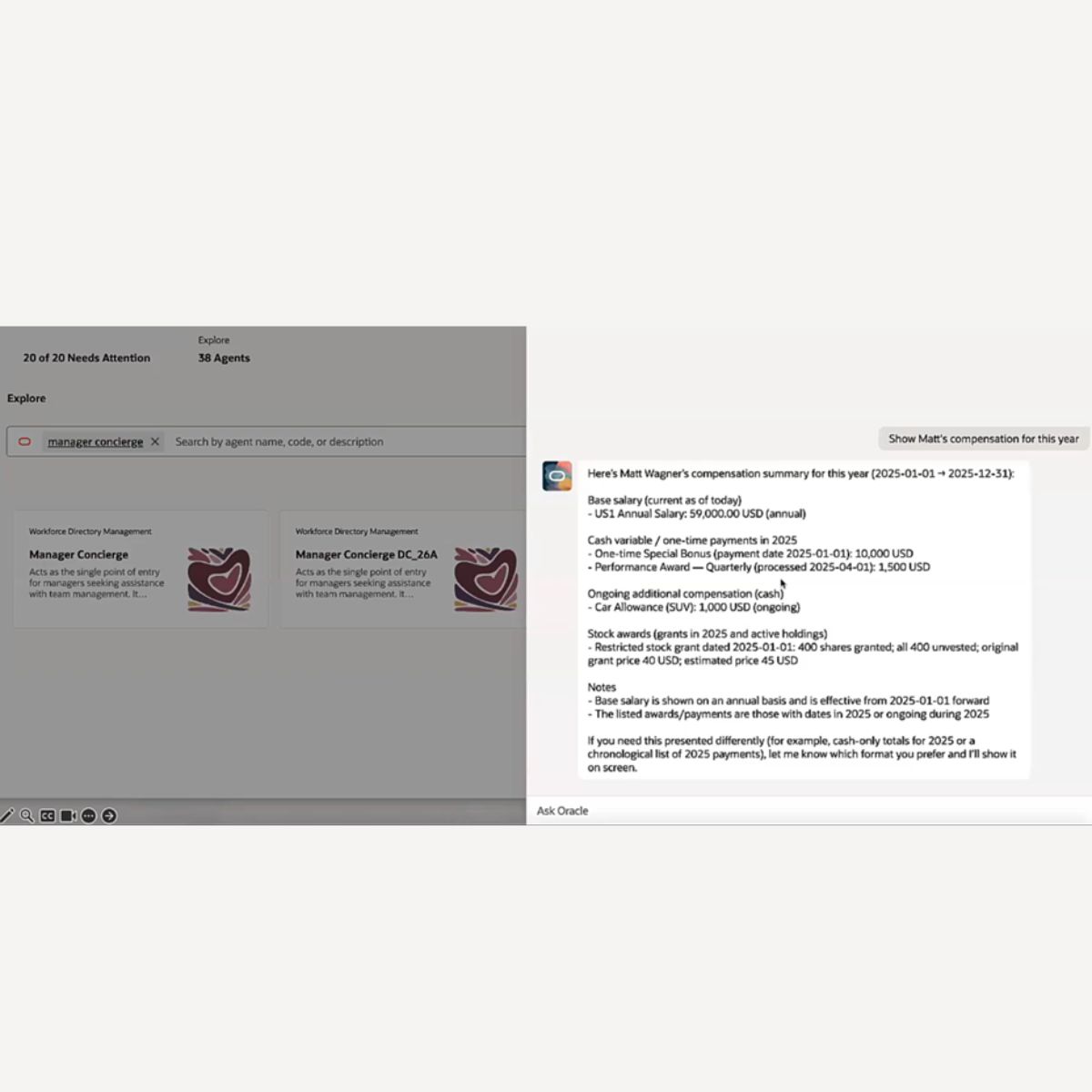 A true step forward in delivering a smarter, more intuitive manager experience all powered by Oracle Agentic AI.